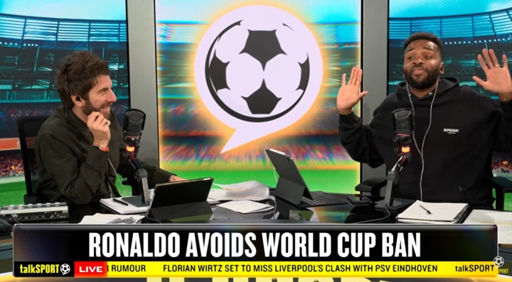 在最近播出的talkSPORT播客中,前英超球员达伦-本特与主持人安迪·戈尔茨坦热烈讨论了C罗因对爱尔兰比赛中的红牌而遭到的禁赛问题。C罗的禁赛竟有两场被缓期执行,这让他在即将举行的世界杯中依然能够为葡萄牙队出战。