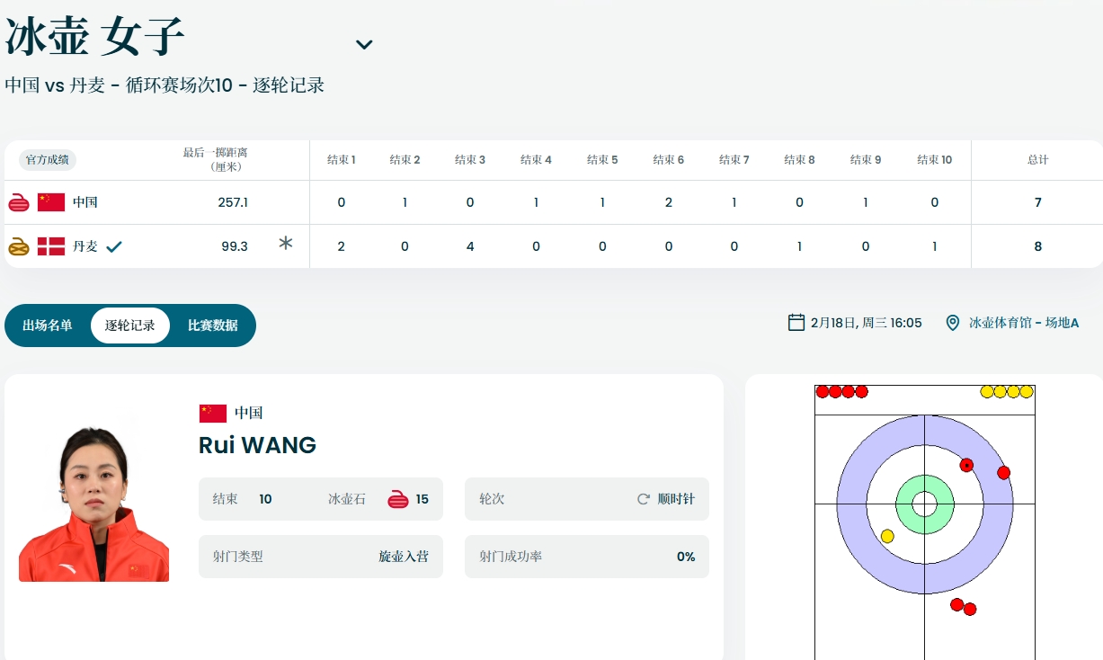 在米兰冬奥会女子冰壶小组循环赛中,中国队在与丹麦队的较量中经历了一场艰苦的比赛,最终以7-8的微弱差距落败。这场比赛,中国队曾在比赛中将1-6的落后局面追至6-6,展现出顽强的拼搏精神,但截至目前,他们已遭遇四连败,团队的循环赛战绩为2胜5负,提前告别了晋级的希望。