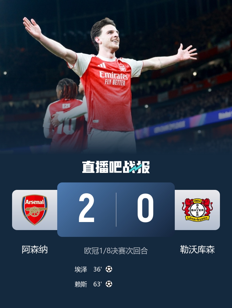 重返赛场后,阿森纳的火力并未减弱。第63分钟,赖斯在中场区域接到球权,带出一步后果断选择远射,皮球如离弦之箭般飞向门框,皮球再次撞进对手的网窝,阿森纳将优势扩大到了2-0,令总比分变为3-1。