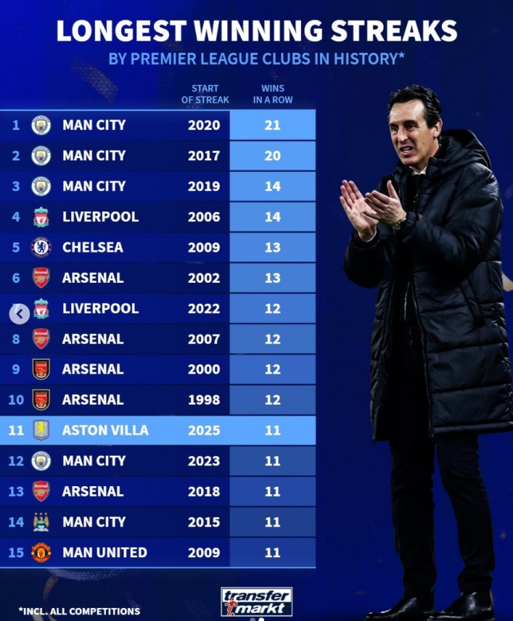 如今,阿斯顿维拉如同一颗新星绽放在英超的天空,继曼城在2023年、阿森纳在2018年、2015年和2009年之后,以11场的连胜成就,跻身这份荣耀的榜单。这样的表现让人不禁对这支球队的未来感到无比期待,他们不仅在当下取得了成功,更在历史的舞台上,悄然留下了深深的印记。每一场比赛、每一个进球,都向世人展示了他们的坚持与拼搏。今日的维拉,定将继续奋发向前,书写属于自己的传奇。