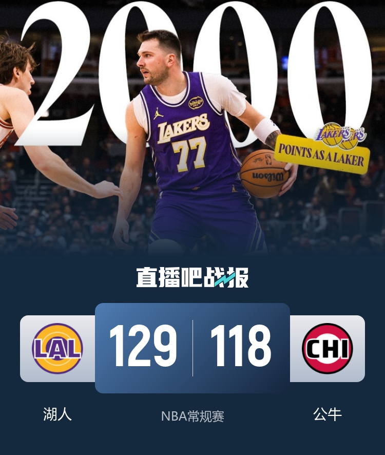 下半场开始后,公牛队继续追分,并一度将分差缩小至1分。然而,东契奇在本节表现出色,单节砍下20分,帮助湖人稳住了领先局面。经过三节的较量,湖人队以104-89保持领先。进入末节,湖人队稳扎稳打,分差一直在10分左右波动。公牛队虽努力追赶,但未能将差距缩小,湖人最终以129-118赢得了比赛的胜利。
