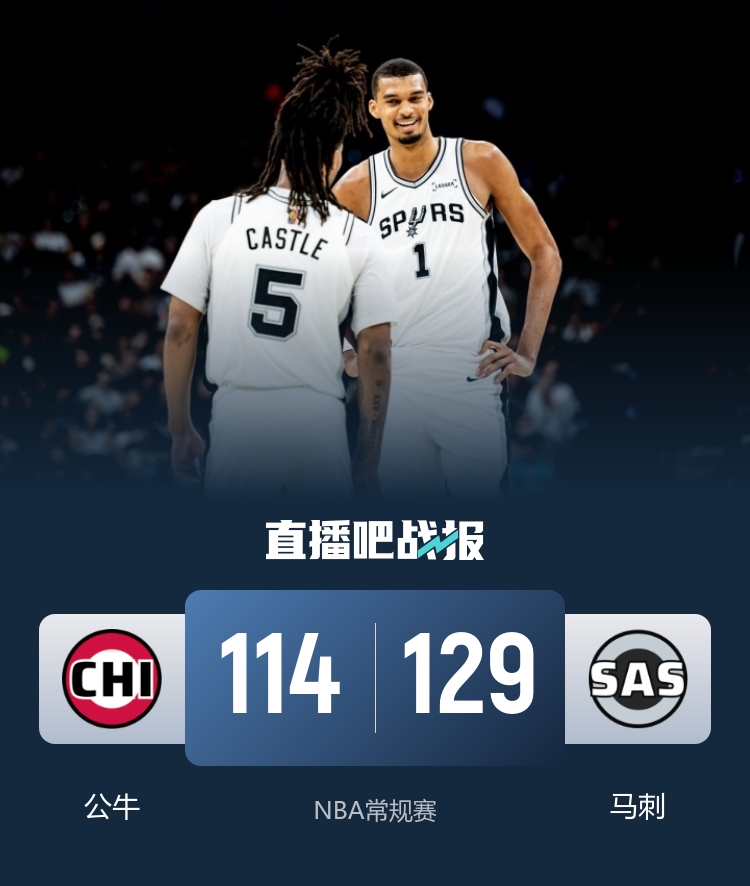 下半场开始,尽管公牛的进攻状态有所恢复,连续得分,但文班亚马依然状态火热,他在内线的强势表现以及外线的三分球命中,让马刺的领先优势迅速扩大至20分以上。尽管在最后一节,公牛掀起反扑并追分,但分差仍保持在两位数,最终马刺以129-114战胜公牛,豪取九连胜,而公牛则遭遇四连败。